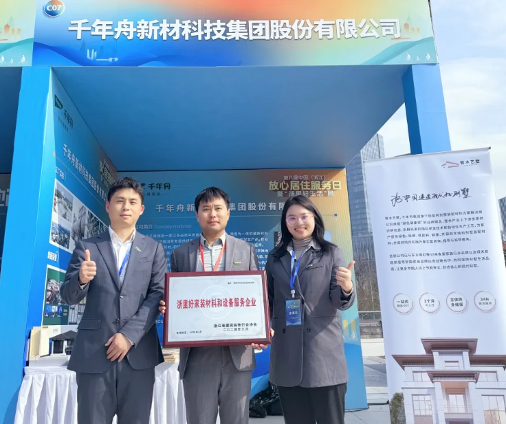 本次活动也通过美丽浙江、钱江视频和钱江楼等全媒体矩阵进行了同步直播,展会开幕式上,千年舟凭借在家装领域为美好人居做出的贡献,荣膺“浙里好家装材料和设备服务企业”称号。