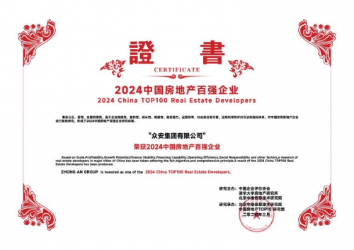 众安集团凭借稳健经营的发展理念、轻重并举的运营能力、持续进阶的产品服务、互融互通的产业优势,再度荣获“2024中国房地产百强企业”、“2024中国房地产百强企业——运营效率TOP10”、“2024中国房地产经营安全性优秀企业”、“2024中国房地产代建运营优秀企业”以及“2024中国房地产政府代建运营优秀企业”等诸多殊荣,获得业内认可。
