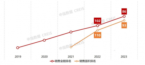 图:2019-2023年众安集团全国销售业绩占位变化(来源中指研究院)