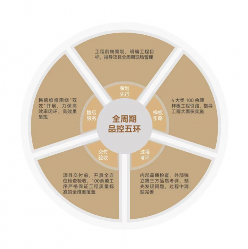 在工程质量维度,众安集团从根本处把好质量关卡。遵循可视化严苛营造标准,将5大类逾200项细部做法植入到众安特色的"工程品控五环”中。始于细节,管理引路,努力将交付的敏感点转化为质量的突破点。