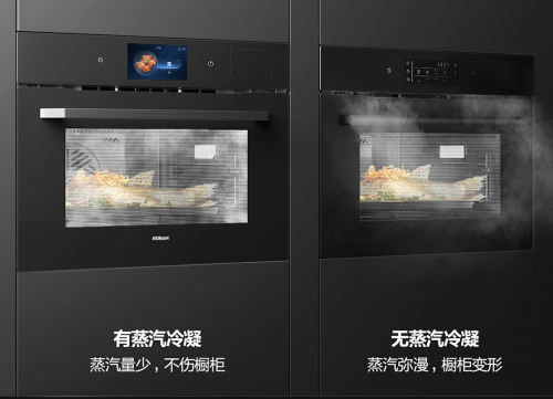 嵌入式蒸烤一体机。顾名思义嵌入到柜体中,它能做到产品和厨房环境融为一体,让美观性大大提升;其次,嵌入式蒸烤一体机空间要比台式大,可以做到50L以上,满足一家人或更多人聚餐使用,烹饪的效率高。同样,选择这类产品的用户,需要在装修阶段就确定好型号,并与装修木工沟通好预留尺寸。