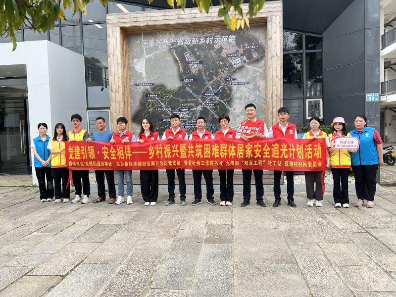 近日,中建安装南方公司广州分公司党支部积极响应属地党工团组织,联合知识城产业聚集服务中心项目、孚能科技电池生产基地项目青年党员志愿者,参加由九佛街公服办、广州市普爱社会工作服务社、九佛街社工站党支部、莲塘村村委会、九佛街“双百工程”社工站联合举办的党建引领·安全相伴——乡村振兴暨共筑困难群体居家安全追光计划活动,弘扬“奉献他人、提升自己”志愿服务精神。