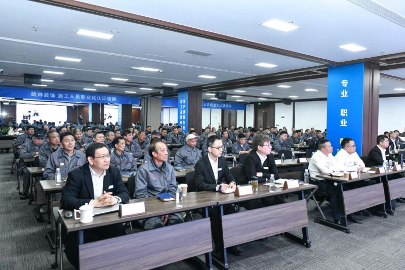 为持续提升一线施工人员的安全文明施工规范、专业技能、职业素养和服务意识,打造一支专业化、职业化、规范化的优秀工匠团队,4月9日,统帅装饰首批施工人员职业化认证培训在统帅装饰集团旗下人才培训和发展中心——同辰学堂如期举行。2005年成立的统帅水电,一直坚持100%持证上岗,已成为家装市场的一支标杆施工队伍。继统帅水电之后,本轮培训针对木工、泥工、油漆工等三个工种,共计近2000名一线施工人员,将在4月份分批完成工人职业化认证培训,这将统帅装饰打造一支职业化、专业化的家装产业工人队伍的梦想,推向新阶段。统帅装饰集团董事长杨海、上海市室内装饰行业协会秘书长丛国梁莅临现场为培训致辞。