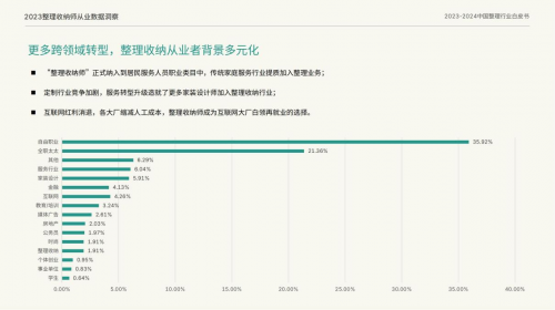 整理收纳行业入局者的多元化为行业注入了新的活力。不同背景、不同领域的人才纷纷涌入这一行业,使得从业者人数呈倍数增长。大量的从业人员不仅为行业带来了丰富的人才资源,更为行业的可持续发展提供了强有力的支撑。他们的加入不仅提升了行业的整体服务水平,也推动了行业的创新与发展。