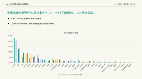 2023年,一线城市仍保持着平稳的增长态势,但二三线城市的增幅相对较小。这反映了整理收纳行业在地域分布上的不均衡性。为了拓展市场,从业者需要深入分析二三线城市的市场特点,制定针对性的市场推广策略,提升当地消费者对整理收纳的认知度和接受度。同时,也可以考虑通过线上渠道拓展市场,打破地域限制,吸引更多潜在消费者。