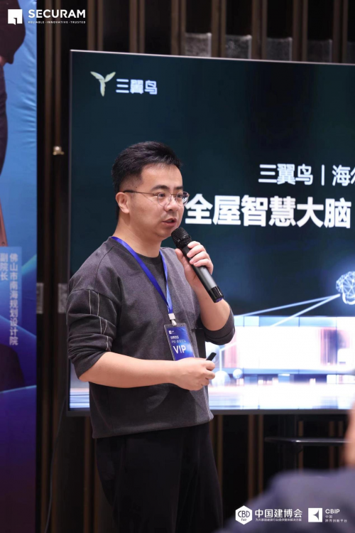 活动伊始,中国建博会展商营销负责人谢治彬先生代表主办方开场致辞,他表示,目前智能家居行业正在持续突破边界,与设计、房地产行业的跨界合作不断加深,逐渐形成家装、家居、家电“三家一体”的新生态。随着“家电以旧换新”政策逐渐铺开,智能家居行业将大有可为,希望未来中国建博会能为智能企业提供更多链接优质设计师与房地产项目的机会,与行业同仁共同探索智能家居行业发展的新模式、新动能。