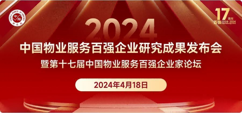 2024年4月18日,由北京中指信息技术研究院研究主办,北京中指信息技术研究院中国房地产TOP10研究组、中国物业服务指数系统研究承办的“2024中国物业服务百强企业研究成果发布会暨第十七届中国物业服务百强企业家论坛”于北京隆重举行。