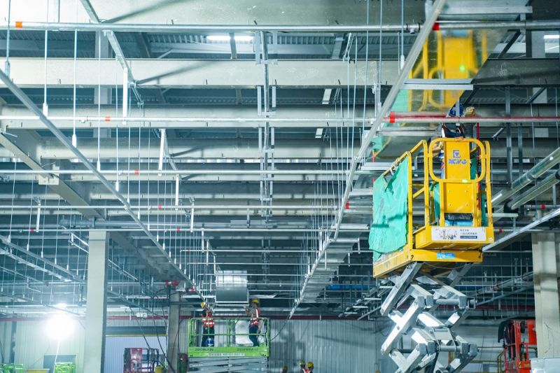5月1日上午,位于广东广州的孚能科技年产30GWh动力电池生产基地机电项目现场依旧是一片繁忙的景象,为奋力冲刺“6·14”完工目标,近千名建设者仍奋战在生产一线。该项目位于广州市黄埔区知识城改革大道以东、人才大道以北,总建筑面积约20万平方米,中建安装建设内容包括电芯车间、化成车间、PACK车间、动力站房等单体的机电安装工程。
