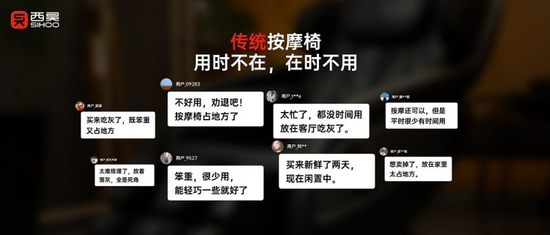 在工作节奏的不断加快的当下,久坐办公的现象业已蔚然成风,对人类脊柱健康的维护构成了严峻考验。纵然传统人体工学椅在腰部支撑功能上做得非常成熟,但对于缓解长时段坐姿引发的疲劳症候,其效能捉襟见肘。市场中上虽不乏按摩椅产品,但该类产品常因体积庞大、移动不便及座椅材质直接覆盖钢架结构导致的坐感不佳等问题,影响用户的实际体验,在购物网站中常有消费者对其表达不满,有用户吐槽“买来吃灰,即笨重又占地方”。