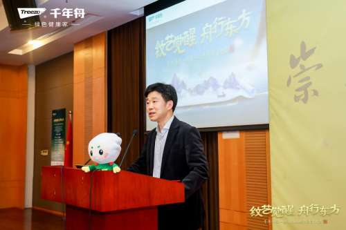 千年舟集团副总裁田茂华在致辞中盛赞东华大学服装与艺术设计学院对设计人才的卓越培养。她表示,此次设计大赛不仅是对这所学院的致敬,更是校企合作的深化,为学生提供实践机会与展示平台。千年舟作为装饰材料行业领军企业,坚持绿色发展,融合传统文化,将品牌发展与东方美学相结合。千年舟期望通过大赛,以赛促研、赓续薪火,将中国传统文化价值及绿色发展理念,传递至更多年轻群体、专业设计群体,激发年轻设计师的创新活力,共同推动行业高质量发展。