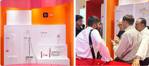 在大白展馆的红色海洋里,米家专区的存在,显得“橙”意满满。此次展会,大白精心挑选了包括龙头净水器、漱口起泡器、抽拉式厨房/面盆龙头、控温淋浴花洒等在内的7款米家爆品与来宾见面。所选单品,不但具有“大白出品”一以贯之的颜值外观,更在产品设计上,将大白温暖贴心的使用体验与小米标志性的科技智能融合得恰到好处。