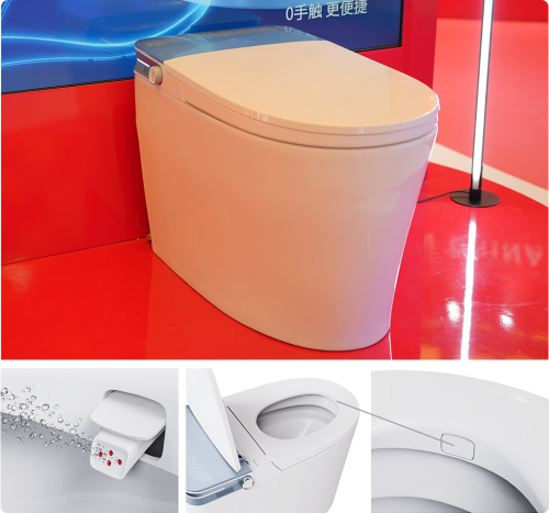 如果说“香草天空淋浴花洒”是高颜值的“设计担当”,那雄踞主入口的两台大白智能马桶,则就是当之无愧的“品智王炸”了。