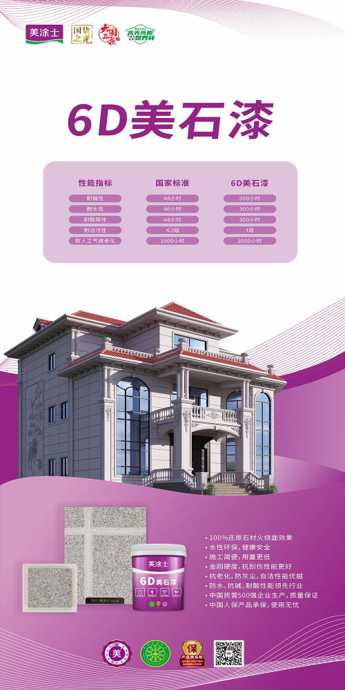 此外,美涂士还以其6D美石漆的环保性能。在涂料的生产过程中,严格控制有害物质的添加,确保产品在环保标准上达到国内领先水平。这不仅是对消费者健康负责,也是对社会环境责任的一种体现。
