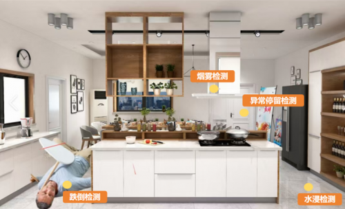 用户可以通过手机App实时查看监控录像,并进行远程控制,实时监控家庭安全,配合移动侦测和报警功能,及时发现异常情况。系统集成了烟雾监测、摔倒检测、异常停留检测、哭声检测等多项功能,对家庭安全问题进行实时监测。