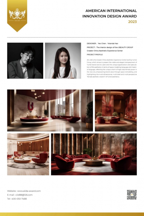 经2023第六届美国AIIDA国际设计大奖组委会评审,陈燮然 郝玉 老师的作品 由美集团大中华区美学体验中心室内设计 成功荣获2023美国AIIDA国际设计大奖 会所空间设计-金奖!