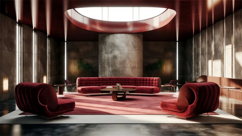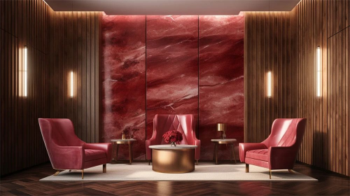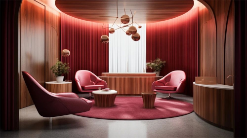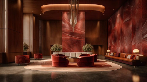 空间在材料语言与空间语法的组合上与大西美学商业思维与空间功能相契合,柔软的酒红色丝织品与深色石材的碰撞是品牌精神凝华为空间实体的精彩演绎。同时各楼层间又通过细节相互呼应,空间序列张弛有度,形成由美美学完整的空间形象体系。