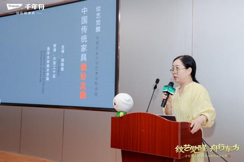 在随后的环节中,清华大学 美术学院博士生导师刘铁军副教授进行了《中国传统家具设计之美》主题讲座,刘副教授通过丰富的实例,展示了传统家具设计的深厚底蕴和独特魅力,探讨了传统家具设计在现代社会的价值和意义。她认为,传统家具设计不仅具有历史和文化价值,而且其独特的设计理念和工艺手法对现代家具设计仍有重要的启示和借鉴意义。她鼓励设计师们从传统家具设计中汲取灵感,结合现代科技和材料,创造出既具有传统文化内涵又符合现代人审美需求的家具作品。