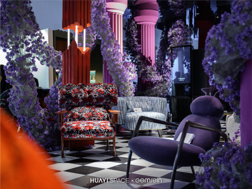 展位内可见以紫色花海作为主视觉的场景,软装设计与产品外观形成呼应,整体设计让整个展位充满自由、先锋与时尚感。以鲜活的创造力为消费者不断地带来惊喜,是华意空间和迹异一直坚持的理念,充满激情的创造力将艺术与家居联系在一起,在视觉艺术、立体主义中探索创造的灵感,塑造出独立的美学态度和品牌审美哲学,无界且多元。