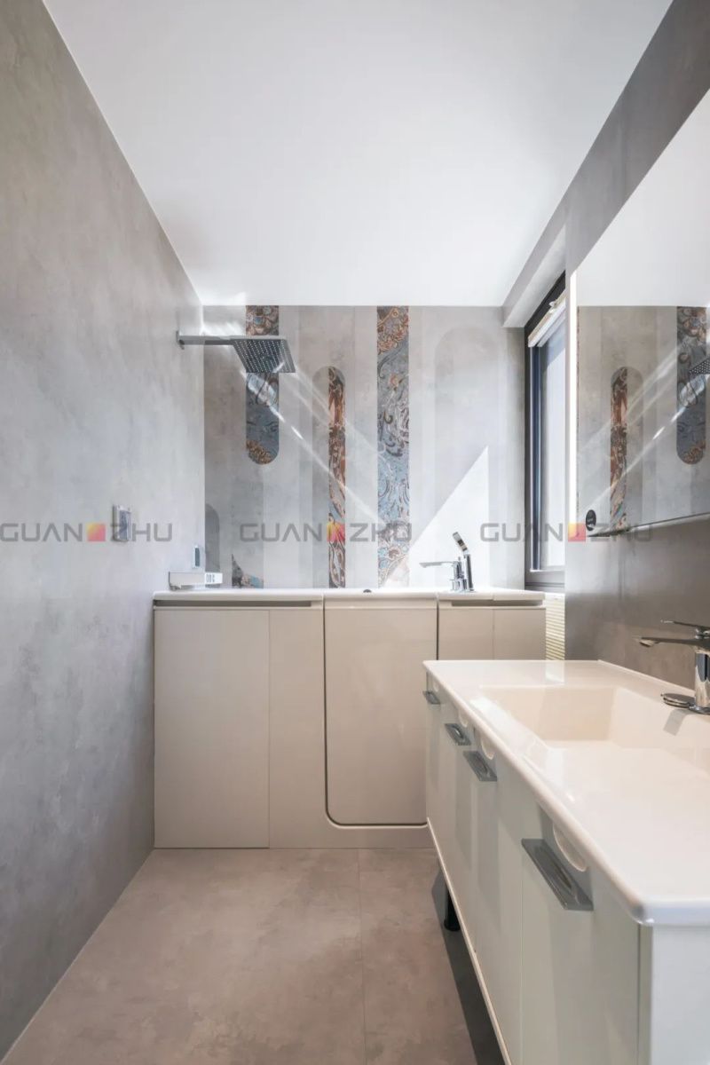 设计师王帅同时会结合居住者的特质来营造空间氛围,在二层长辈房盥洗室中运用了冠珠华脉岩板敦煌印象,整个空间呈现出雅致清幽、静谧心安的氛围,打造出一个具备中国传统文化内涵和意境的居住之地。
