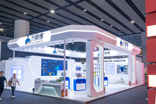 作为国内知名家居展会的常驻嘉宾,万师傅携最新服务解决方案亮相A区智能家居馆3.1馆16号展位,以130㎡的未来科技风展台设计,将高端、智能、便捷等特征展现得淋漓尽致,吸引大量往来观众驻足。