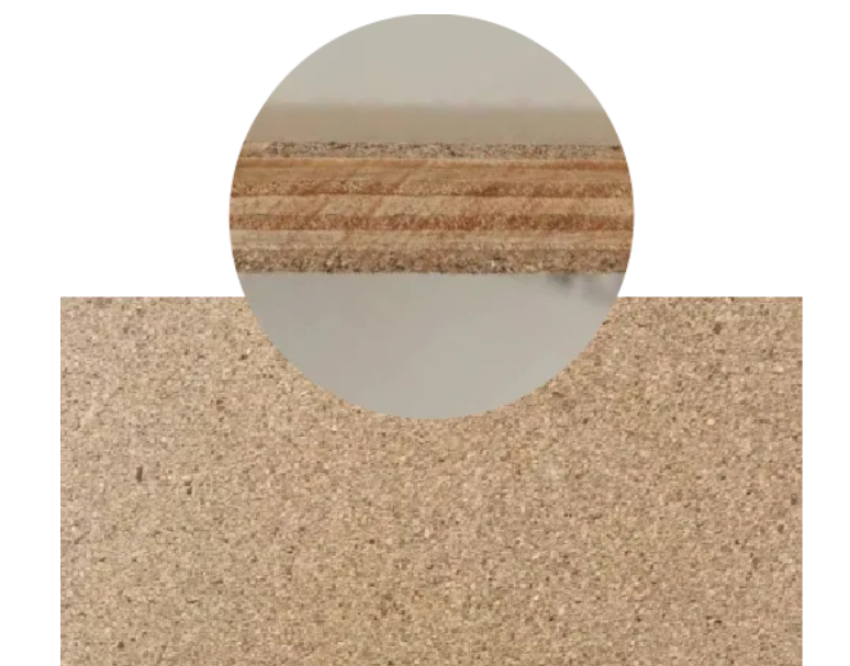 千年舟饰能板饰面系列基板芯材结构,经加工后锁定8-16%黄金含水率,更好的适应气候变化。同时板材表面松木细刨花高能聚合形成稳定表面层,能有效改善板材表面龟裂、开裂问题。