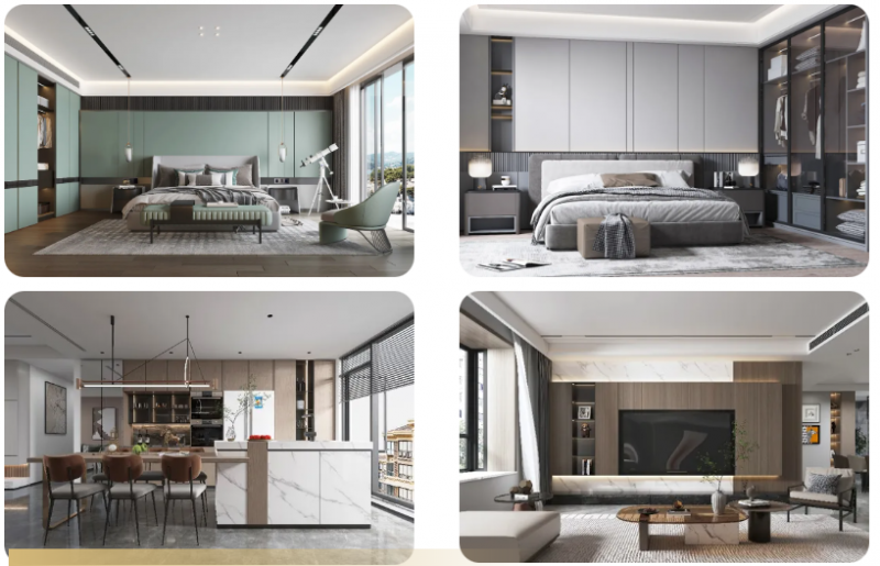 为了更好满足更多消费者的需求,千年舟推出的饰能板饰面系列不仅花色多样,色泽美观,更是兼具质感和触感,可适用于各类全屋定制家具及超高门板的制作,满足全国范围内大多数家庭多种不同饰面工艺要求。此外千年舟饰能板饰面系列基板24小时吸水厚度膨胀率≤12%,优于潮湿状态下使用刨花板(P5型)≤15%的标准要求,可在浴室、厨房、阳台等特殊场合使用,应用范围更广。