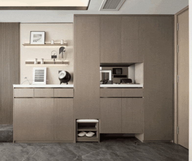 同时澳思柏恩智能工厂采用德国4.0工业设备,全自动三次砂光一次成型,板材表面达到中等密度纤维板平整度,板材表面平整度高,适合各种饰面,装饰性强,更适合用作柜门板材。