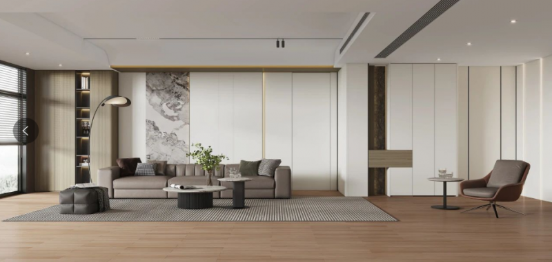 实木地板的应用不仅仅是为了满足实用性,更是一种对传统美学的现代诠释。而为了发挥其更好地装饰作用,地板的铺设方式同样十分重要。平铺、人字拼、鱼骨拼等不同的铺设方式能够呈现出不同的视觉效果,进一步丰富空间层次。平铺方式简洁大方,适合现代简约的新中式风格;人字拼和鱼骨拼方式则更加复杂多变,能够为空间增添一份动感和立体感,展现出传统中式的精致与匠心。