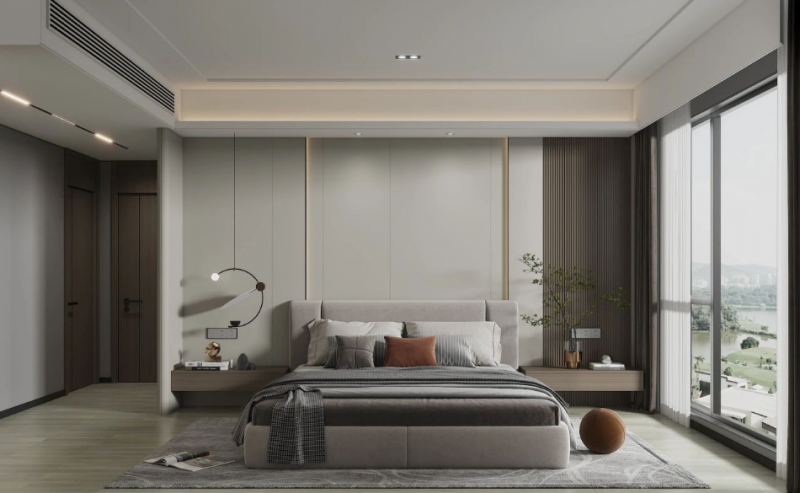 我们不难发现中式设计常常运用对称、简洁、自然的元素来营造出一种中式文化的氛围,如传统的屏风、窗棂、字画、古玩等。同时,中式设计也注重色彩的选择和搭配,以自然色、暖色调为主,如米白、浅灰、浅棕等,营造出一种温馨、舒适的家居氛围。