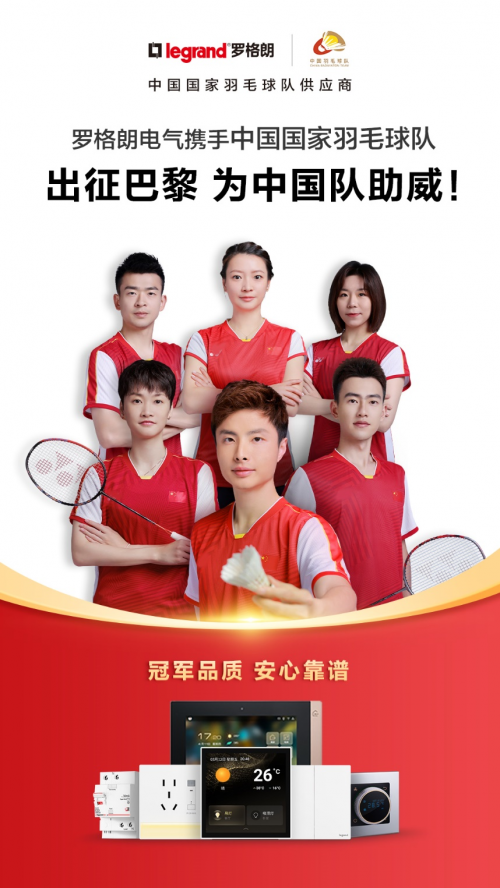 罗格朗电气作为中国羽毛球队供应商,始终致力于为羽毛球爱好者及中国亿万家庭提供卓越而先进的电气解决方案,并将继续陪伴国羽健儿向着巴黎更高荣誉发起冲击。我们邀您一起为国羽健儿加油助威!