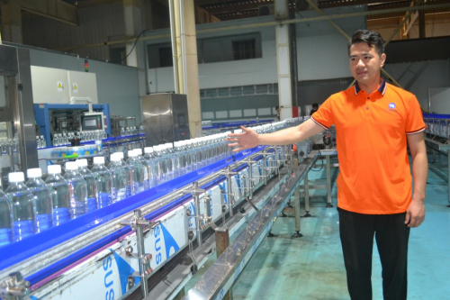 走进江苏雨果饮品有限公司生产车间,只见水处理车间、吹瓶车间、灌装车间、贴标车间、包装车间、码垛车间等均是全自动化生产流水线设备,20名工人正有条不紊地操作机器,整个生产车间呈现一派有序而忙碌的氛围。