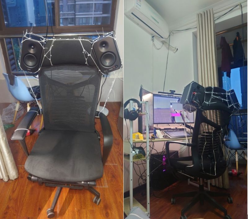在网络上,我们可以看到一些富有创造力的玩家,他们被称为“扎带仙人”,通过DIY的方式,将音响环绕在椅子周围,创造出一种沉浸式的听觉体验。