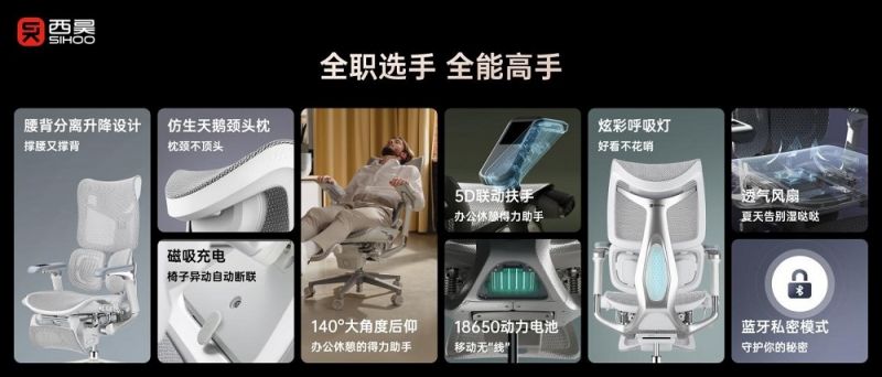 西昊T6在功能配置上同样不遗余力,配备了浮翼腰托2.0、仿生天鹅颈头枕、5D联动扶手、透气风扇、磁吸充电、18650动力电池、炫彩呼吸灯及蓝牙私密模式等多项前沿科技,全方位提升用户体验。
