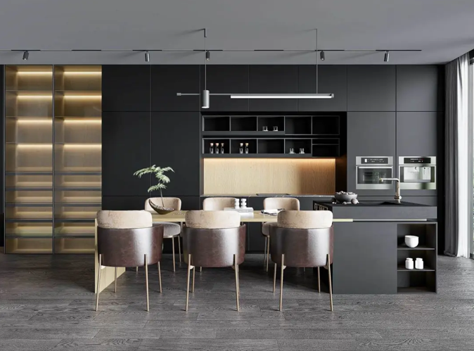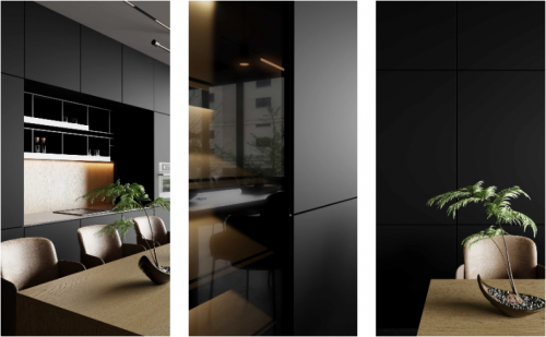 玄夜黑深沉而神秘的色调,为空间带来了一种独特的韵味。这种板材不仅质感细腻,触感舒适,更能在视觉上营造出一种低调而奢华的氛围。