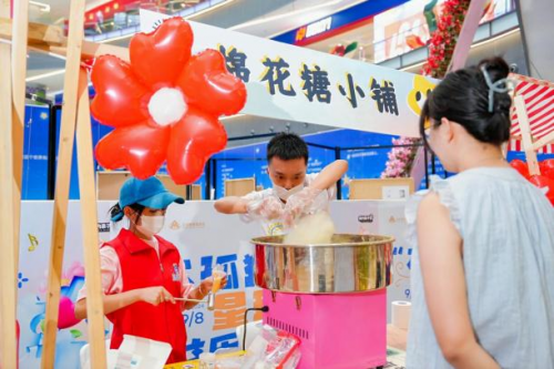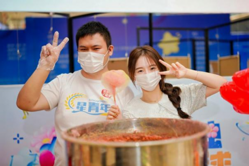 在公益乐园外围还有一处“星星共创基地”,多位“星青年”在爱心人士的陪伴下,成为了咖啡屋、面包坊、手作坊的店主,他们向市民介绍产品,面带微笑招揽客户,还学习制作棉花糖,憨态可掬的模样让人忍不住想要立刻为他们的努力“买单”。