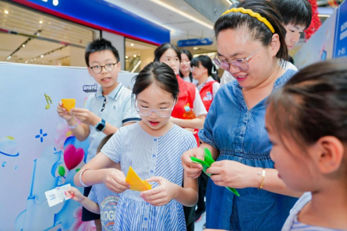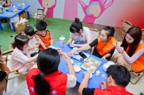 一个温暖、有爱、包容的互动环境里,可以慢慢打开人们的心扉。在不孤独星球公益乐园内,随处都可以看到这样暖心的画面:小朋友们把秘密写在蓝色千纸鹤里,“悄悄”说给星孩听;一个个印在一起的手印,是孩子们“牵手”的见证;大家拿起画笔,填满一颗颗彩色的星球,只为绘就出一个缤纷的世界;星孩们的艺术画书签和手工饰品,是最抢手的“商品”,大家用捐赠代替购买,让星孩们通过学习到的技能更好地实现了自我价值。