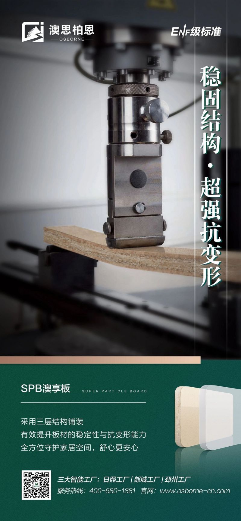 澳思柏恩SPB澳享板遵循高效严谨的生产流程,采用优质原木为基材,引进德国4.0工业智能设备,性能优异、美观环保,可广泛应用于柜体、柜板、门板等。