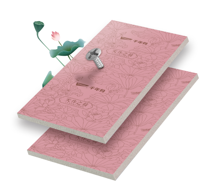千年舟纸面石膏板国韵系列•天作之荷,板芯以脱硫石膏为主,添加高密度增强纤维丝,握钉力强,强度和韧性进一步提升,更利于尺寸稳定,不易变形。在吊顶与隔墙施工时不易崩边,家装品质更加可靠。