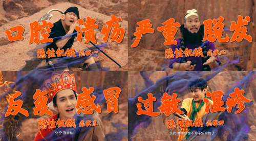 直至他们突然发现“隐性饥饿”早已潜伏身上:猪八戒口腔溃疡,捂嘴喊疼;沙僧严重脱发,面露无奈;唐僧频繁打喷嚏,反复感冒;就连神通广大的孙悟空也长满了湿疹。原来第82难“隐性饥饿”不是踪影莫测的妖怪,正是一直潜伏在身边的营养健康隐患。