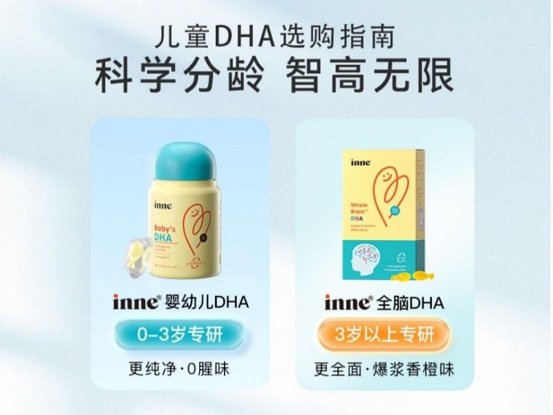 今年,inne提出“分龄精准补充营养”的理念,为不同成长阶段的儿童提供更精准的营养支持,成为分龄系列产品最完整的营养品牌之一。inne竹节钙专为6-18岁青少年研发,这个阶段的孩子除了钙和维生素D,还需补充氨基酸来促进生长激素分泌[1]。基于此,inne竹节钙特别添加专利kidtal®L-赖氨酸[2],结合钙镁锌D3K2组成的成骨因子,帮助青少年科学拔高[3],与针对更低龄儿童的小金条完善了钙系列产品的分龄设计。inne全脑DHA针对3岁以上儿童,采用“DHA+神经酸”的复配配方,全脑同补,助力孩子获得更高阶的学习力[4],与针对0-3岁低龄宝宝的婴幼儿DHA共同构建了DHA产品矩阵。