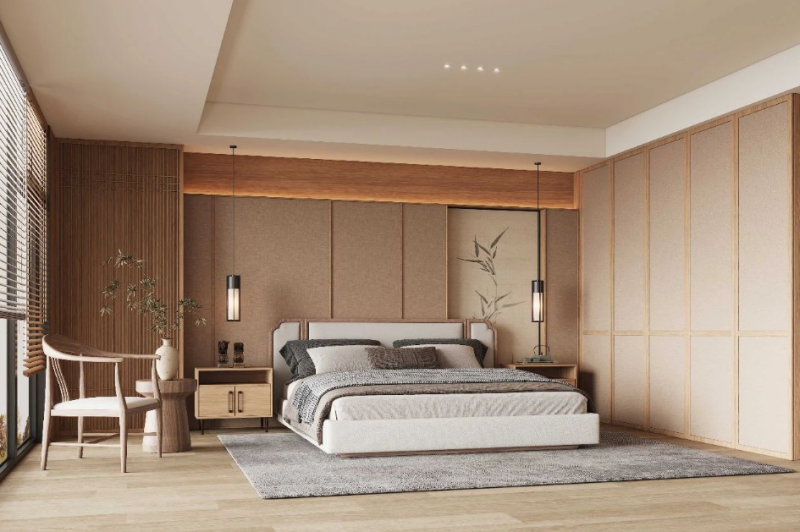 天然织物的纹理,低调宁静有内涵;复古又高级的布纹饰面,以其独特的编织纹理,为室内空间增添了丰富的视觉层次。应用于卧室背景墙,能够营造出一种回归自然、温暖的氛围感。