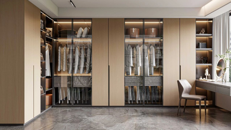 百搭通用的浅色胡桃木纹,保留了木材天然纹理和质感,给人一种亲近自然的感觉,与白色门板结合,避免过多的装饰和线条,不仅满足现代人的审美需求,还能使空间更加宽敞明亮。