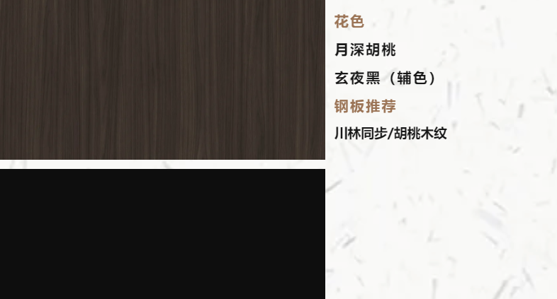 干净利落、端庄典雅的月深胡桃为空间平添了高级感;搭配玄夜黑既保留了传统中式风格的精髓,又融入了现代设计元素。让空间更加时尚、现代,这种融合方式,让新中式空间在传承和创新之间找到了完美的平衡感。