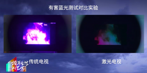 直播过程中陈梦也带上了蓝光眼镜对于海信激光电视进行了实测,确实是没有蓝光光源伤眼的问题。并且海信激光电视是反射成像不反光无眩光,观看感受非常自然,能做到长时间的观看也没有任何不适。