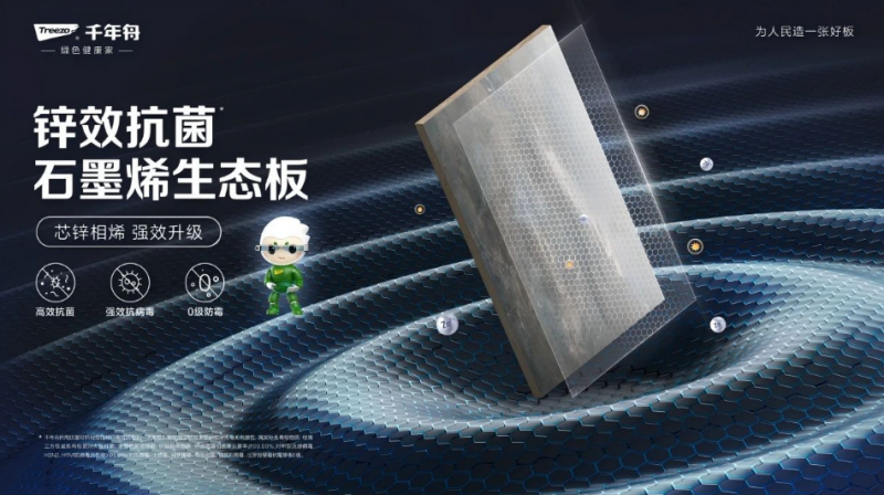 被誉为“黑金”的石墨烯是一种性能优异的新型碳材料,在多个高新领域有着广泛应用,千年舟通过攻坚克难,创新推出锌效抗菌石墨烯生态板,这是石墨烯首次跨界人造板领域,不仅深度契合消费者对健康安全的高标准需求,更以科技力量推动行业革新。