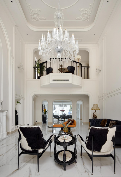 在设计中,我们加入了自然的元素,如绿植、和石材等。这些元素的使用可以增加空间的自然感和舒适度,也能为室内空间增添一种优雅和浪漫的氛围。同时精致的家具、优雅的线条、精致的挂画和地毯等。这些细节的处理可以使室内空间更加精致和有品味。