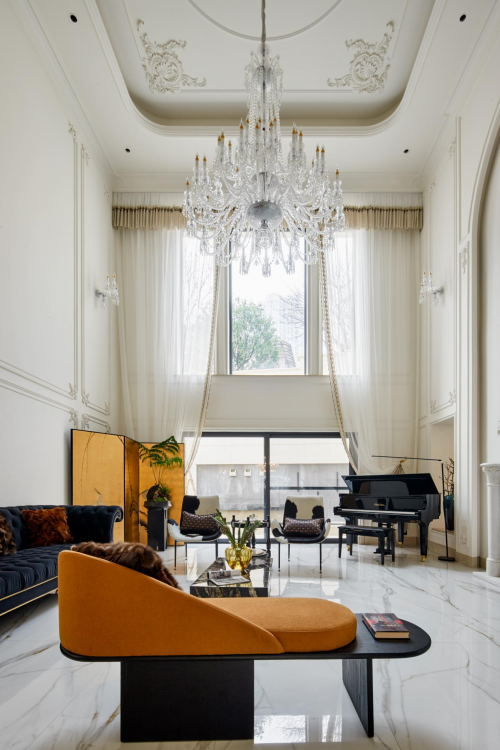 设计师以精神性的总体感觉把控空间规划,以材料与色彩营造空间氛围,空间布局上契合现代生活方式的功能区域划分,以现代框架为主题,以简洁和冷淡的现代底色,强烈的空间感和立体感,整个空间通透和大气。