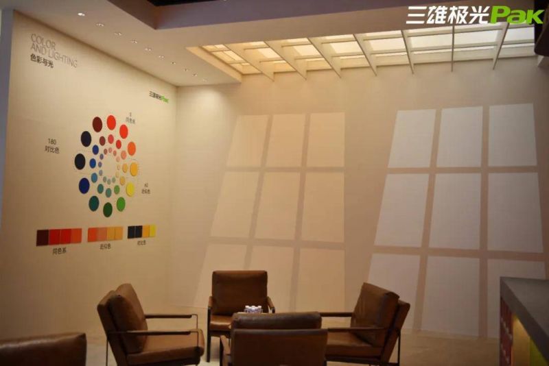 “自然光”通道利用全光谱专业偏光射灯,模拟了阳光穿过缝隙洒落在墙面,让参观者更直观地感受自然光的魅力,领悟设计顺应自然的真谛,在这里还可以领略到色彩与光的关系,设计师们得以感知和运用。激发了家居设计师对照明设计的深度思考,纷纷与三雄极光照明设计师进行交流,共同探索家居“自然光”照明的新趋势。