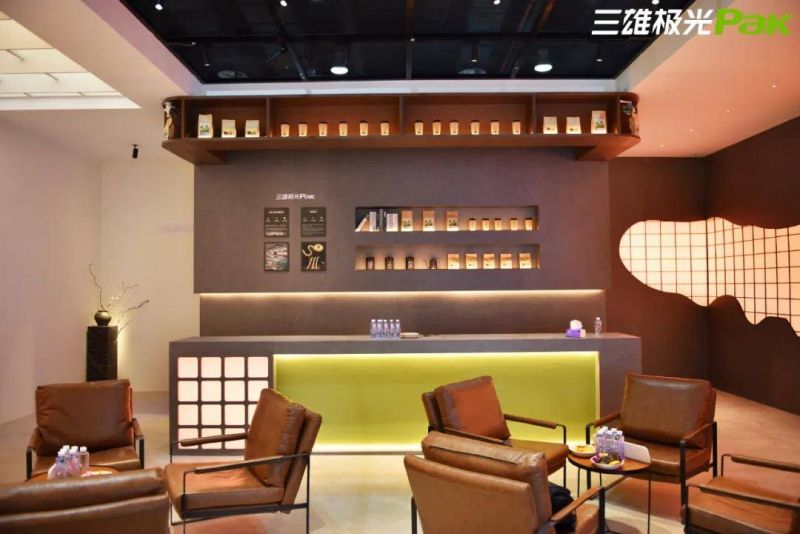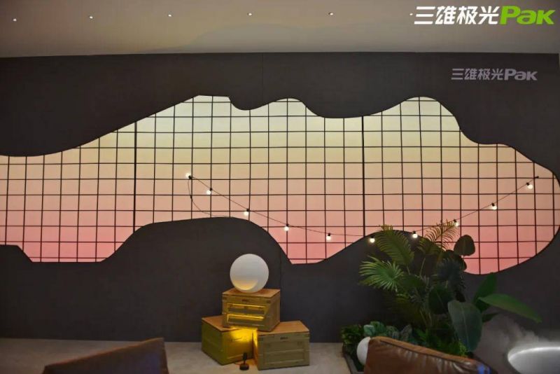 更有精心准备的绿色生态饮品休闲区,伴随极智智能无线系统带来的光色变化视觉体验,参观者可在此休息洽谈,感受光赋予生活的宁静与美好。