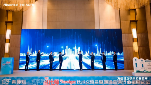特别值得一提的是,此次活动上,中设协建环分会名誉会长、全国工程勘察设计大师 罗继杰,中设协建环分会会长、北京市建筑设计研究院有限公司总工 张杰,中设协建环分会副会长、中国建筑西北设计研究院有限公司总工 赵民,中设协建环分会副会长、浙江大学建筑设计研究院有限公司董事长 杨毅,海信日立助理副总裁 周志刚,海信日立公司华东大区总监 刘岩,海信日立客户支持部总经理 刘贵廷,海信日立宁波分公司总经理 韩成等嘉宾共同见证,《海信日立碳中和白皮书》重磅发布。